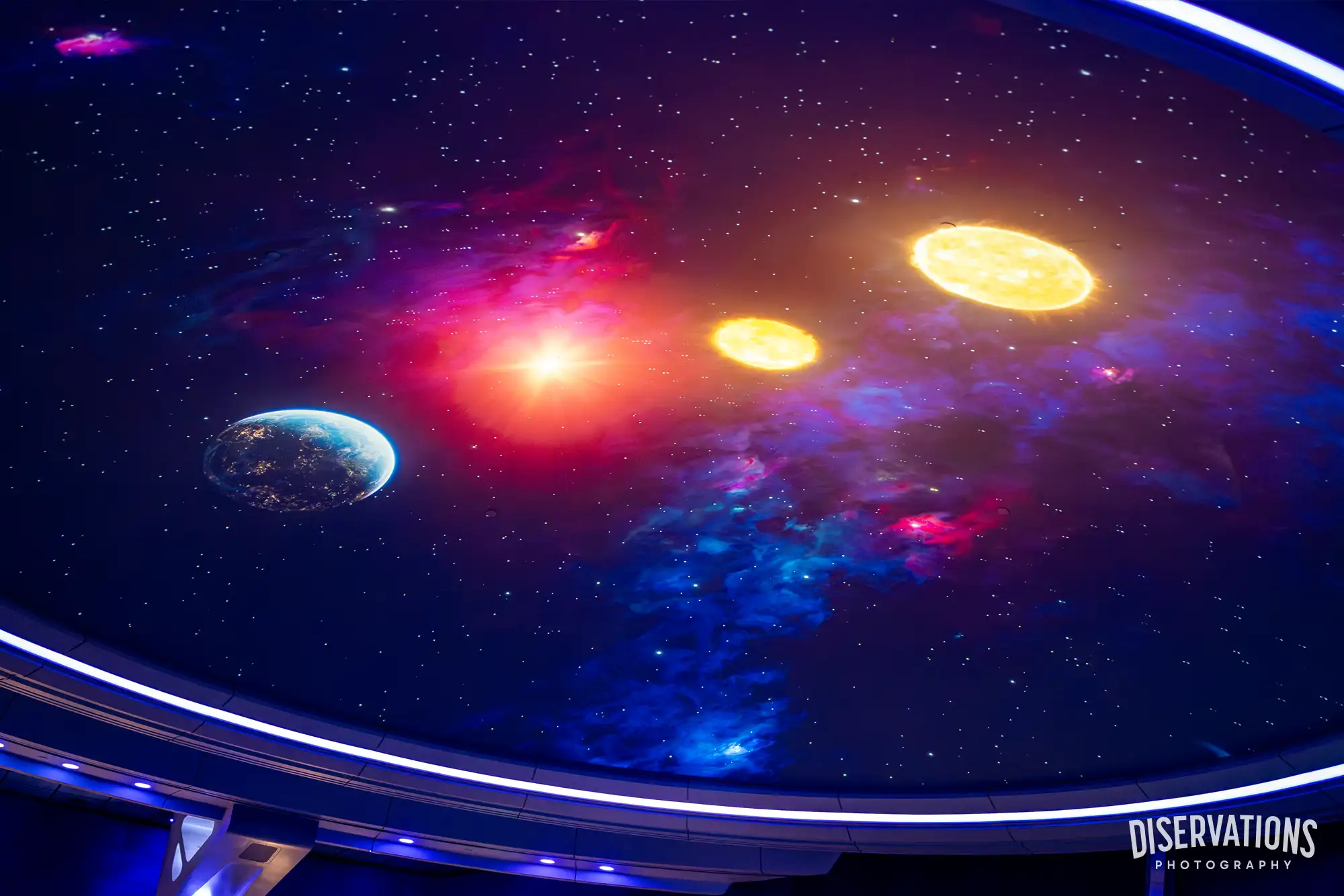 The queue and pre-shows for Cosmic Rewind are loaded with references to things in outer space (both real and the fantastical.)