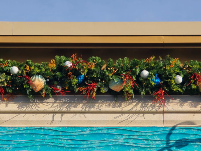 Meanwhile, over at the Atlantic Restaurant, Epic’s other table service restaurant, has its garland filled with seashells and other items related to a seafood nature.