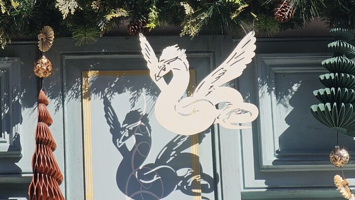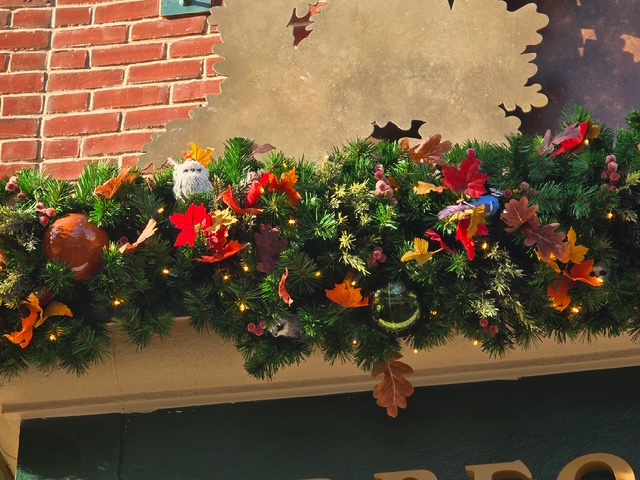 While there are no Christmas decorations inside Super Nintendo World or Dark Universe, the Wizarding World of Harry Potter – Ministry of Magic is loaded with them once you walk inside the portal! One garland features paper-like cutouts of several magical creatures…