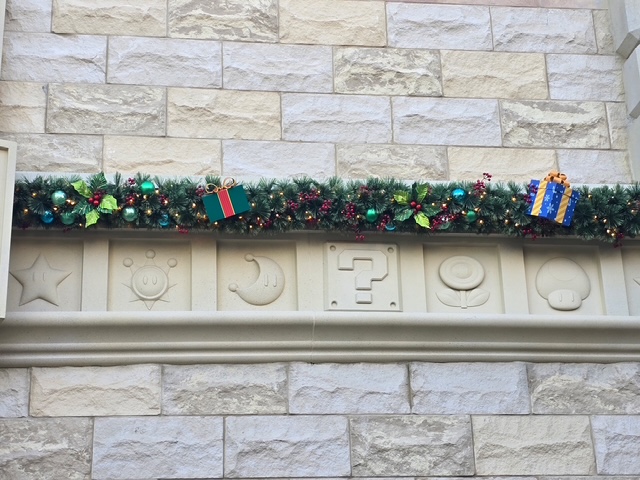 While Super Nintendo World does not have any Christmas decorations once you walk through the portal, the large Nintendo shop in Celestial park has some.