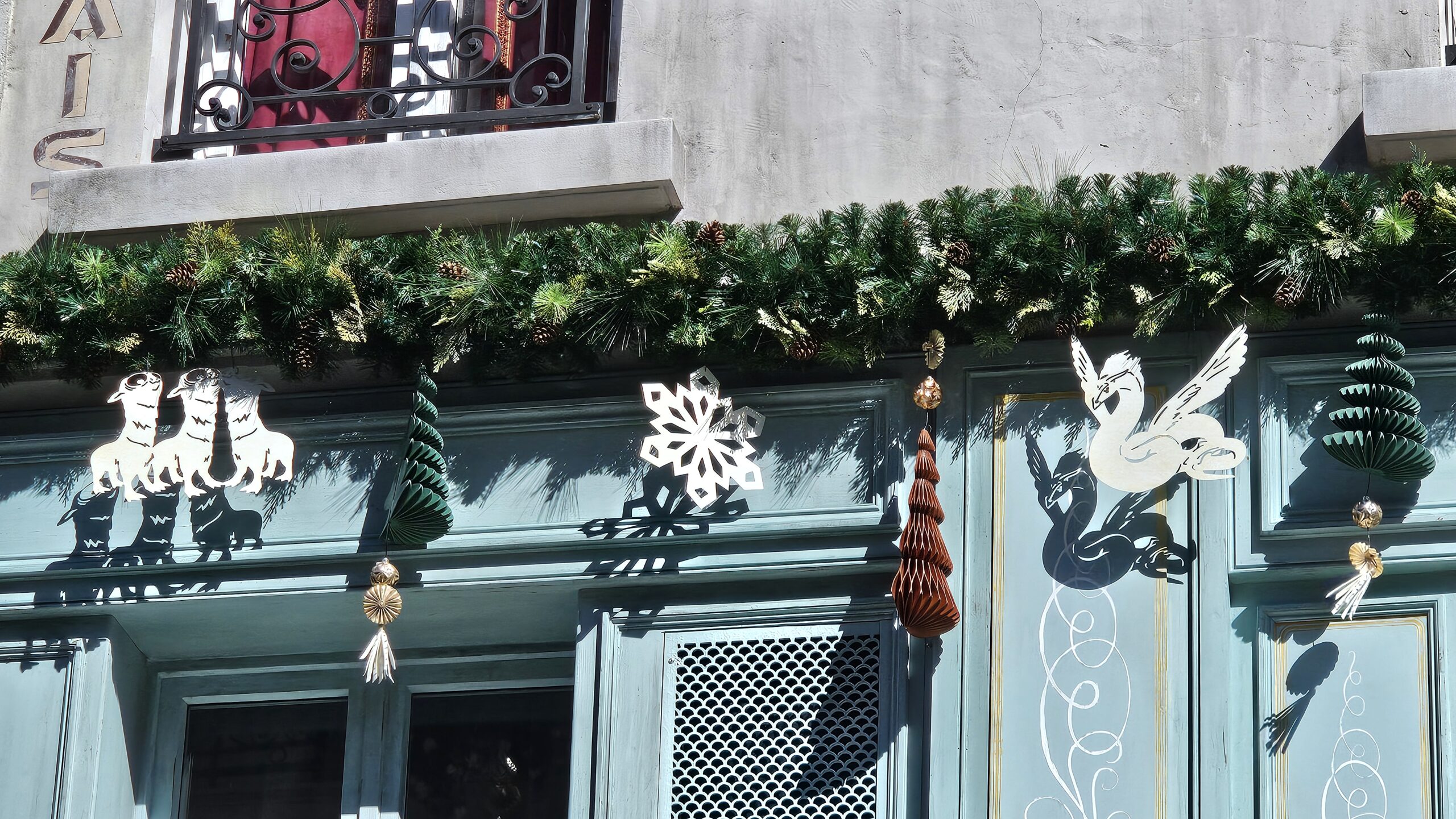 The garland outside Oak & Star is filled with small critters, fitting in with the overall nature feel of the restaurant.