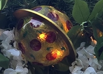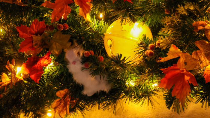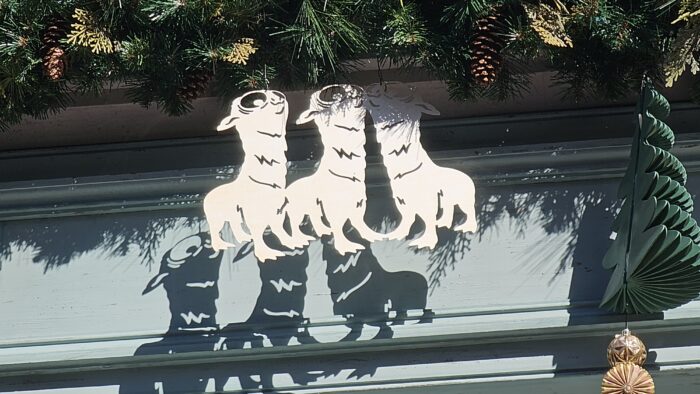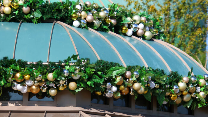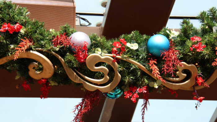This next example of theming is one of the best I’ve ever seen. From afar it looks like your normal Christmas theming that you’ve seen in many places, complete with golden bells at the top.