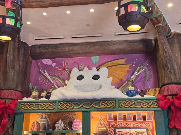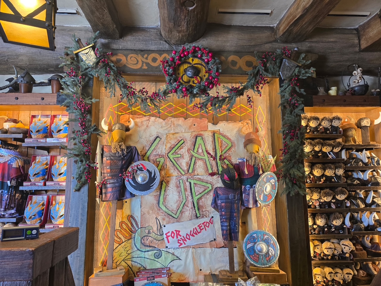 The other world that celebrates “Christmas” at Epic Universe is the Isle of Berk. However, it has already been established in How To Train Your Dragon canon that the Vikings of Berk celebrate Snoggletog as their winter holiday. Accordingly, the Isle of Berk at Epic also celebrates Snoggletog!