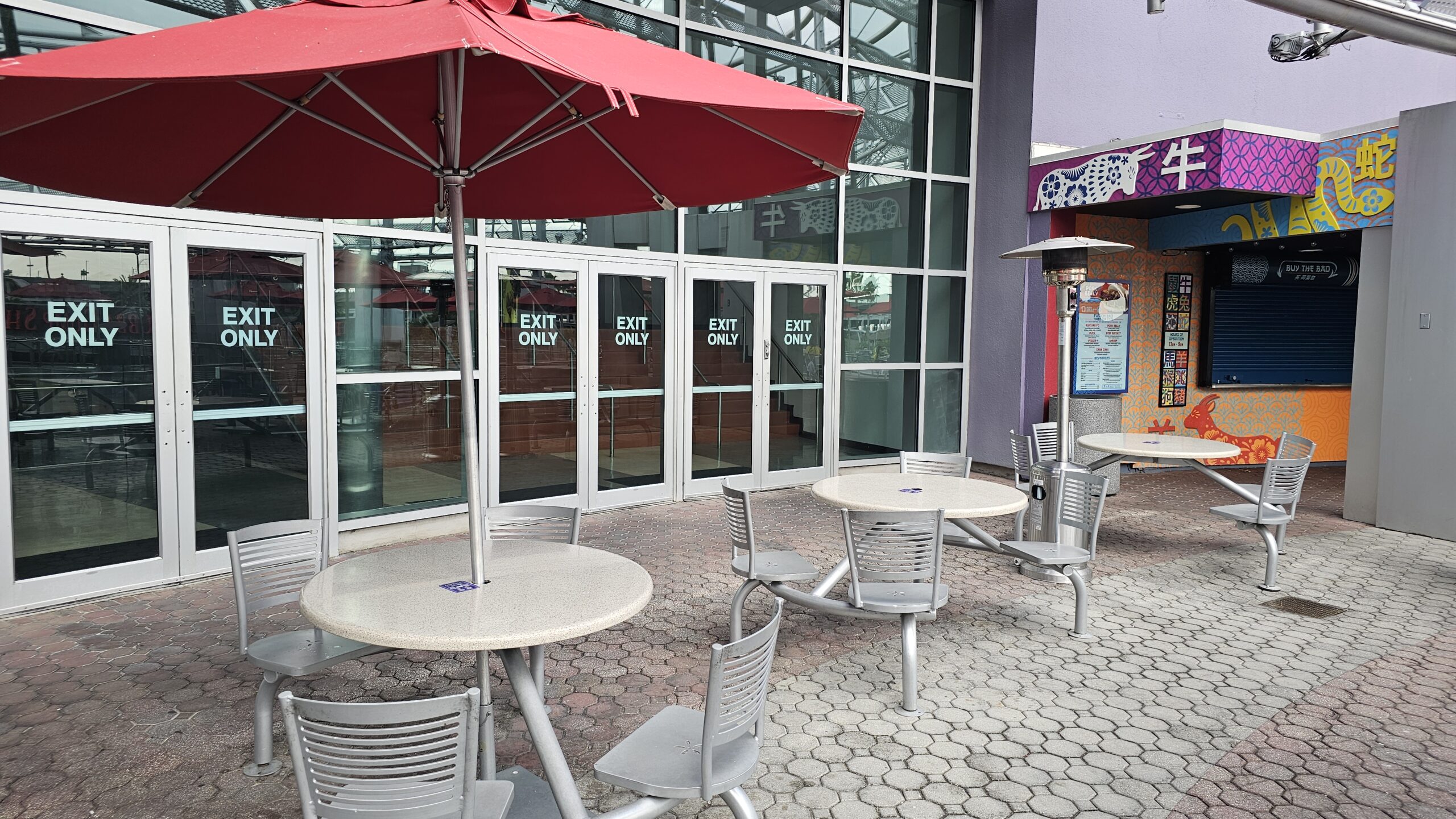 There is a large variety of outdoor seating at Citywalk, but as of this writing the only area which has the option of mobile delivery is on the second level outside of Burger King/Moe’s Southwest Grill/Movie Theater.