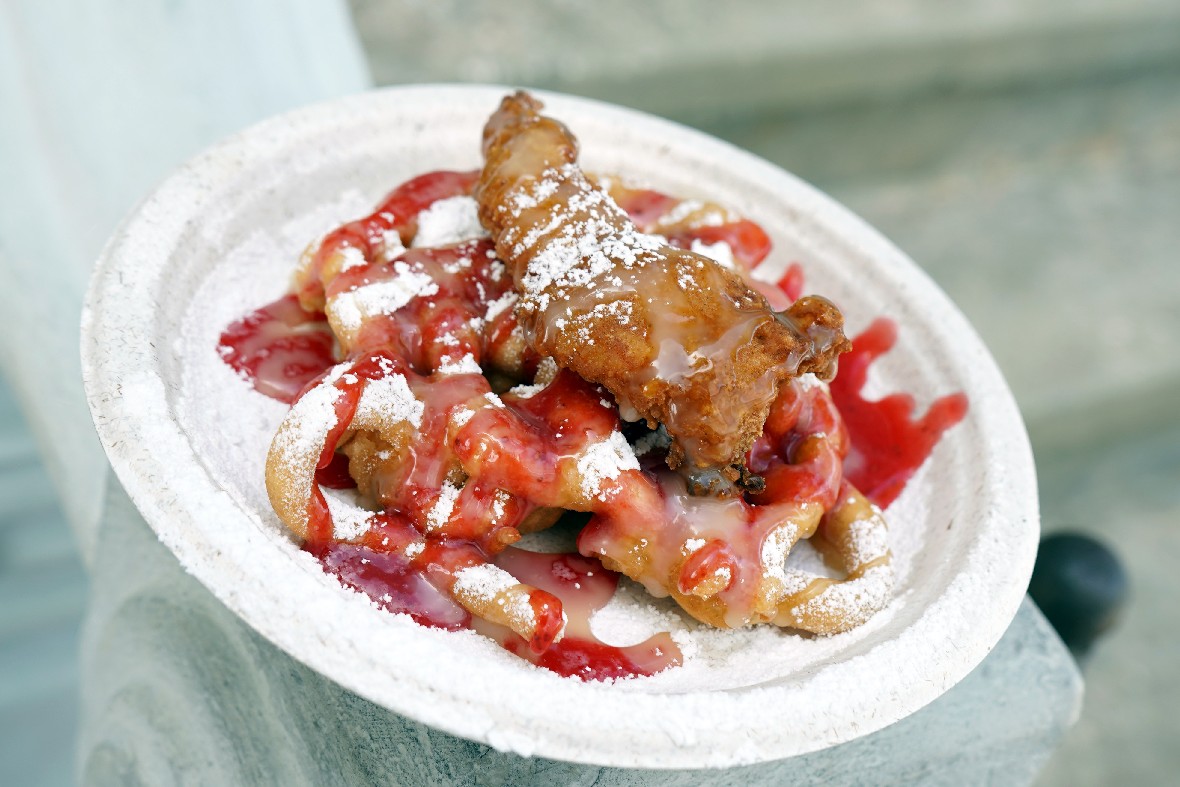 Two food trucks serve unique spins on traditional theme park food. The food truck located next to the Music Plaza Stage features a fried chicken and funnel cake with strawberry sauce and pork rind nachos. Despite the weird dichotomy between the chicken and strawberry sauce, it works.
