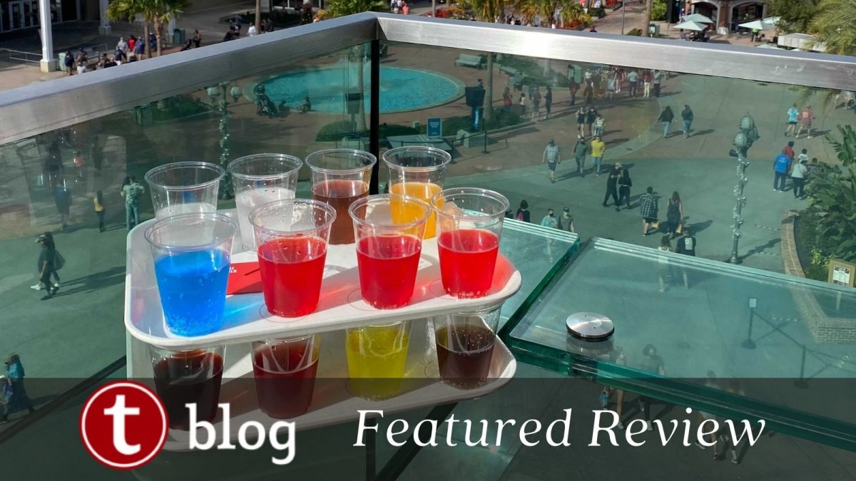 It’s been a while since the closure of Club Cool at EPCOT, and many of us are still mourning the loss. The good news is that some of the international Coca-Cola products, including the drink everyone loves to hate – Beverly – are still available to sample on Disney property. The bad news is you have to pay for those samples. Our team made the climb up to the rooftop bar at the Coca-Cola Store at Disney Springs to give the Around the World flight a try.