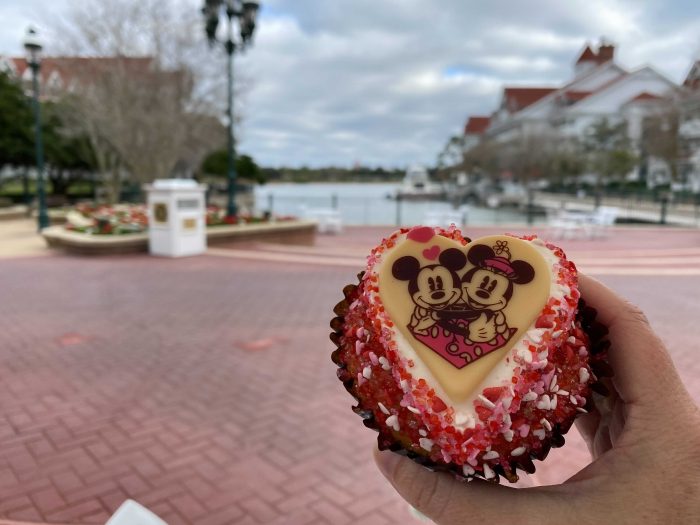 Right now during Valentine’s Day season you can find a Valentine’s Day Cupcake with Cinnamon Mousse at Disney’s Grand Floridian Resort and at Disney’s Contemporary Resort. At the some of the Value resorts, such as Pop Century, there is the Call Me Sweetheart cupcake with chocolate and hazelnut.