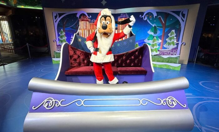 Santa Goofy is meeting in The Odyssey at 11:30am – 3:30pm, and 4:10pm – 7:10pm daily through December 30, 2025. PhotoPass Photographers are present.