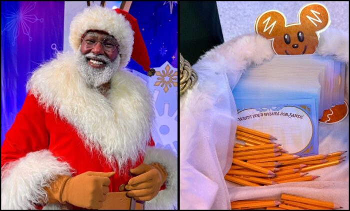 This sweet Santa is welcoming guests inside CommuniCore Hall at 10:00am, 11:30am, 1:00pm, 2:30pm, and 4:00pm through December 24, 2025. Holiday kitchens don’t open until 11:00am so that gives you a whole hour to meet him before you begin snacking. Don’t forget to fill out the provided wish cards pictured above. PhotoPass Photographers are present.