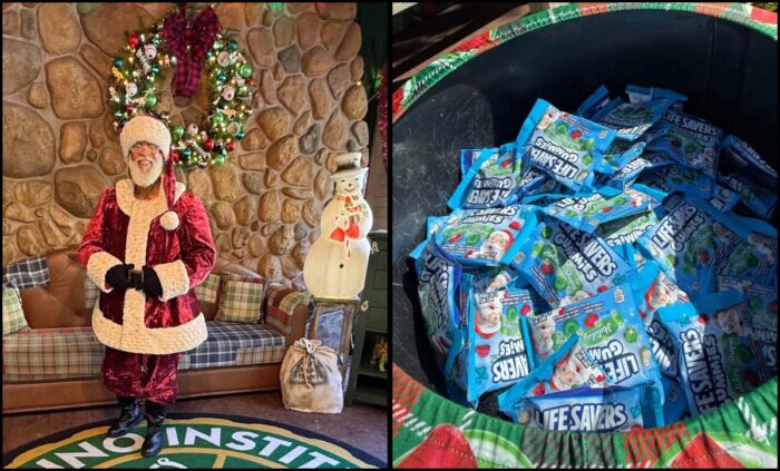 You’ll find Santa in DinoLand U.S.A. daily though December 24, 2025. He will be welcoming guests at 11:45am, 1:45pm, and 3:30pm. When we visited him a few days ago, we were given Santa Gummy Life Savers as we left. There is a PhotoPass Photographer present at this location, too.