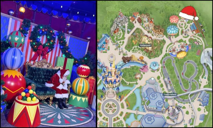 Santa Claus is now meeting under the big top during the day in Storybook Circus. He will be meeting guests intermittently through the day until December 24, 2025. You can still visit with him in this same location during Mickey’s Very Merry Christmas Party.