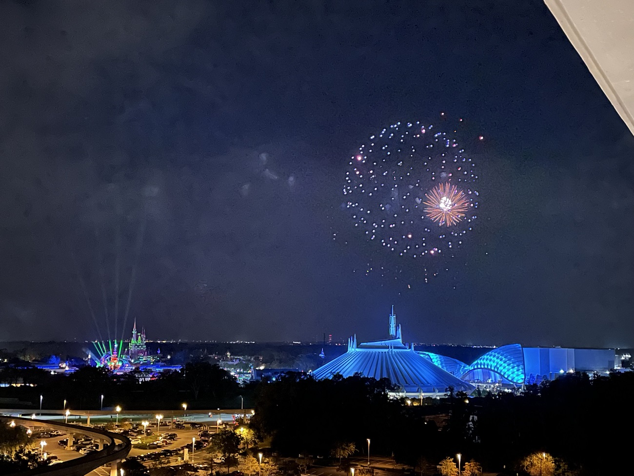 if you stand all the way on the left side of the balcony and lean over the railing, you can see Space Mountain. Classified as a theme park view, but isn't really. There is a constant noise din when sitting on the balcony at all hours. Luckily you cannot here that inside the room with the door closed.