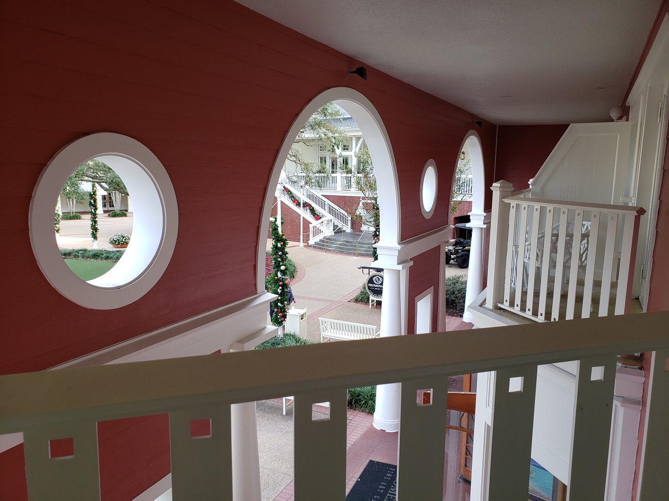 Stayed in this room after requesting the same room one floor up. The view is slightly distorted as you can see in the pictures, but still a great view of the lawn. The room is on the same floor as the lobby and is short walking distance to the lobby, elevators, stairs and Vending. We did not find it loud at all, but the balcony is angled which makes it a tight squeeze to fit two people. I might not request this room again (mainly for the obstructed view), but really don't have any major complaints.