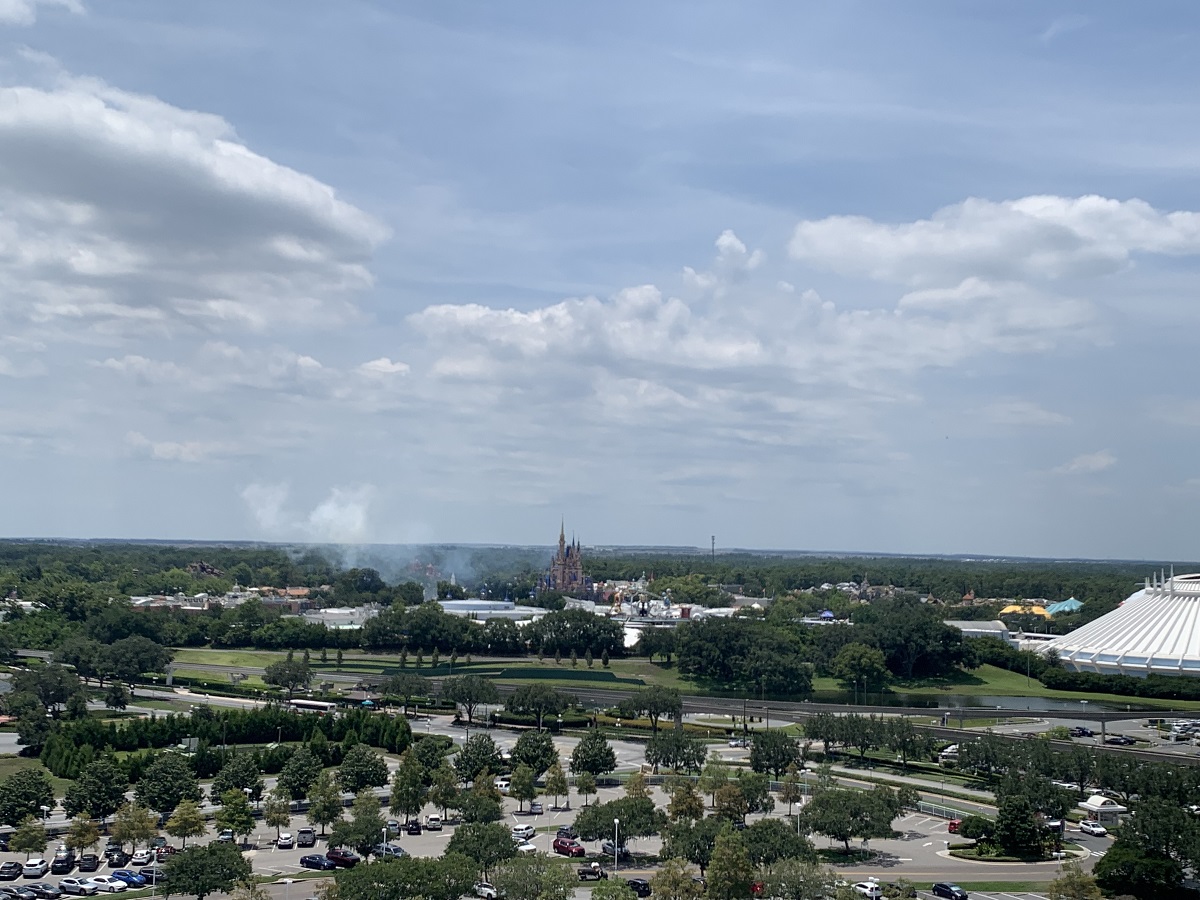 Great view! Can see Orlando Eye, SeaWorld, Wilderness Lodge, Spaceship Earth, and more in the distance. Plus watch Electrical Water Pageant from the balcony!