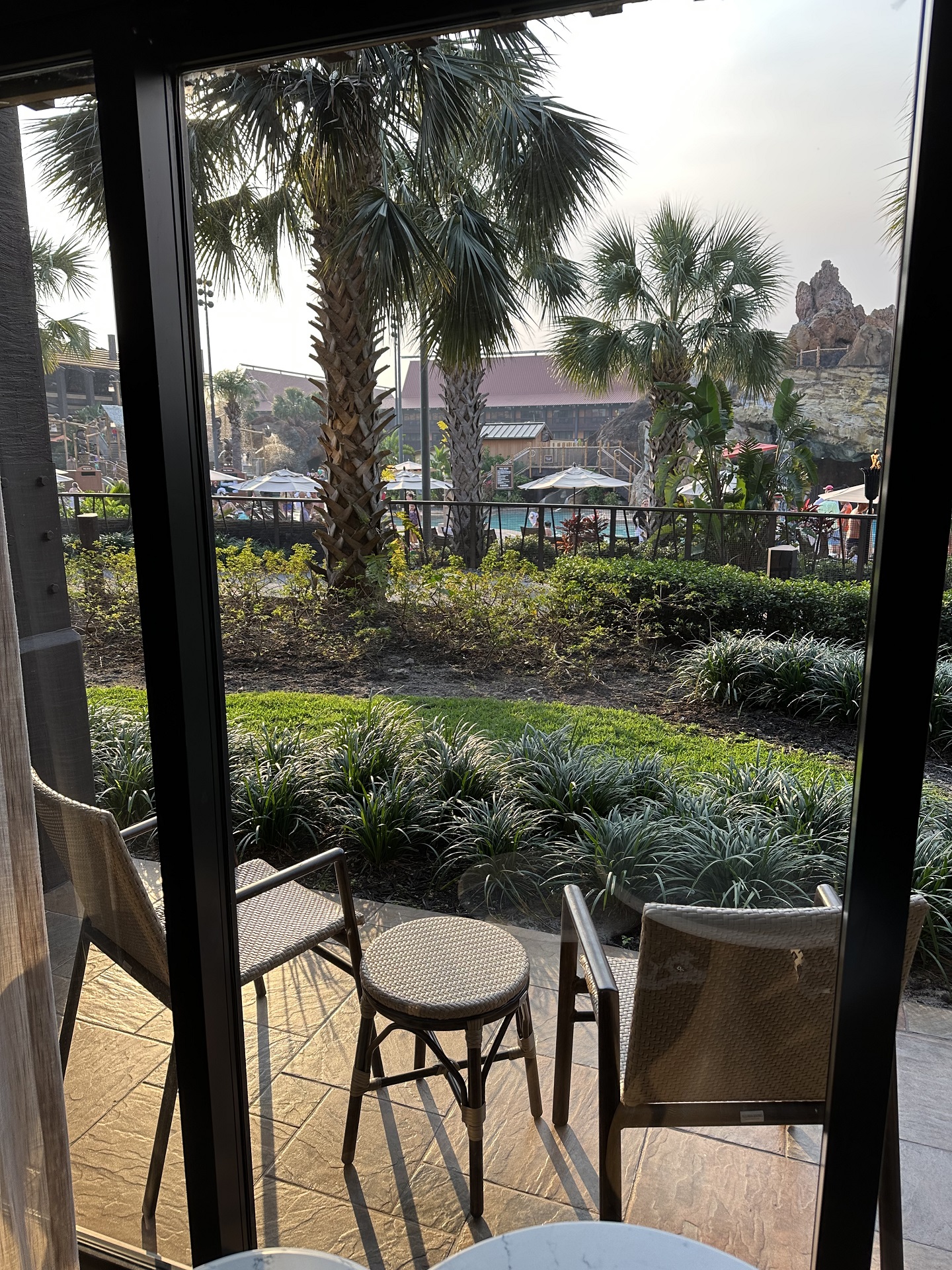Loved staying in this room! Beautiful view of the Lava pool right in front of the volcano. Great central location, easy access to both pools and the hot tub at the Lava pool, not far to the GCH for Capt Cook's and the monorail, and can go out the other end of the hall for the resort boat to MK. Not the quietest location in the afternoons with all of the pool activities and music but peaceful at night.