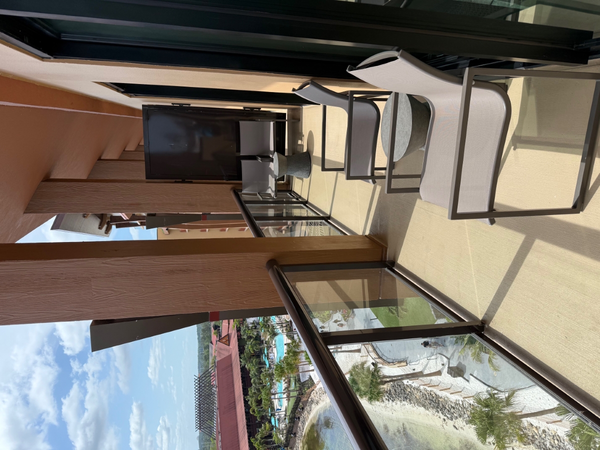 Fairly obstructed view of Magic Kingdom due to a roof line that juts out to the left side of this room's balcony. It's still a great view of overall, but to get the best view of fireworks you need to squeeze up into the front right corner of the balcony.