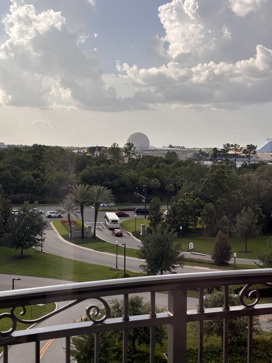 Absolutely MAGICAL room! Stunning view of Spaceship Earth, which you can even see from bed! Great views out to the Skyliner and over the lake at Caribbean Beach for fabulous sunsets! Best room!