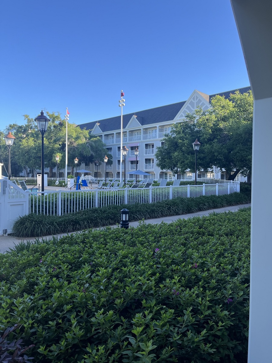 This was a great room - quiet and near several exits for easy access to Epcot or the Boardwalk without having to walk all the way to the lobby. The pool was never crowded and therefore wasn't noisy. Great porch for your morning coffee with the runners going by.