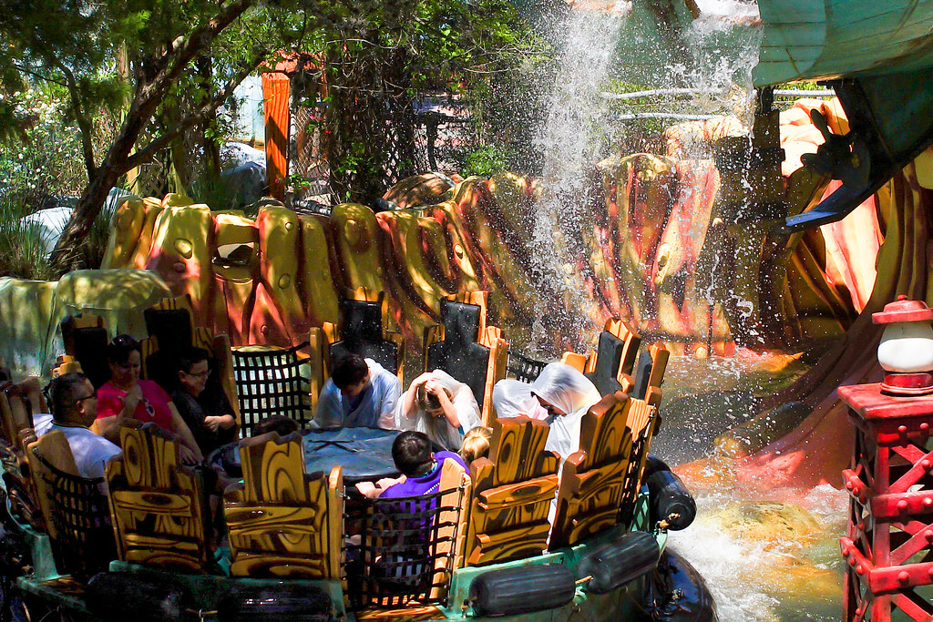 This ride usually opens an hour later than the rest of the park, typically 10 am. Experience the barges in the morning after the Marvel Super Hero attractions and Dudley Do-Right. Some people ride the Bilge-Rat Barges and Dudley Do-Right's Ripsaw Falls consecutively, right before leaving the park, to avoid sloshing around in wet clothes most of the day.