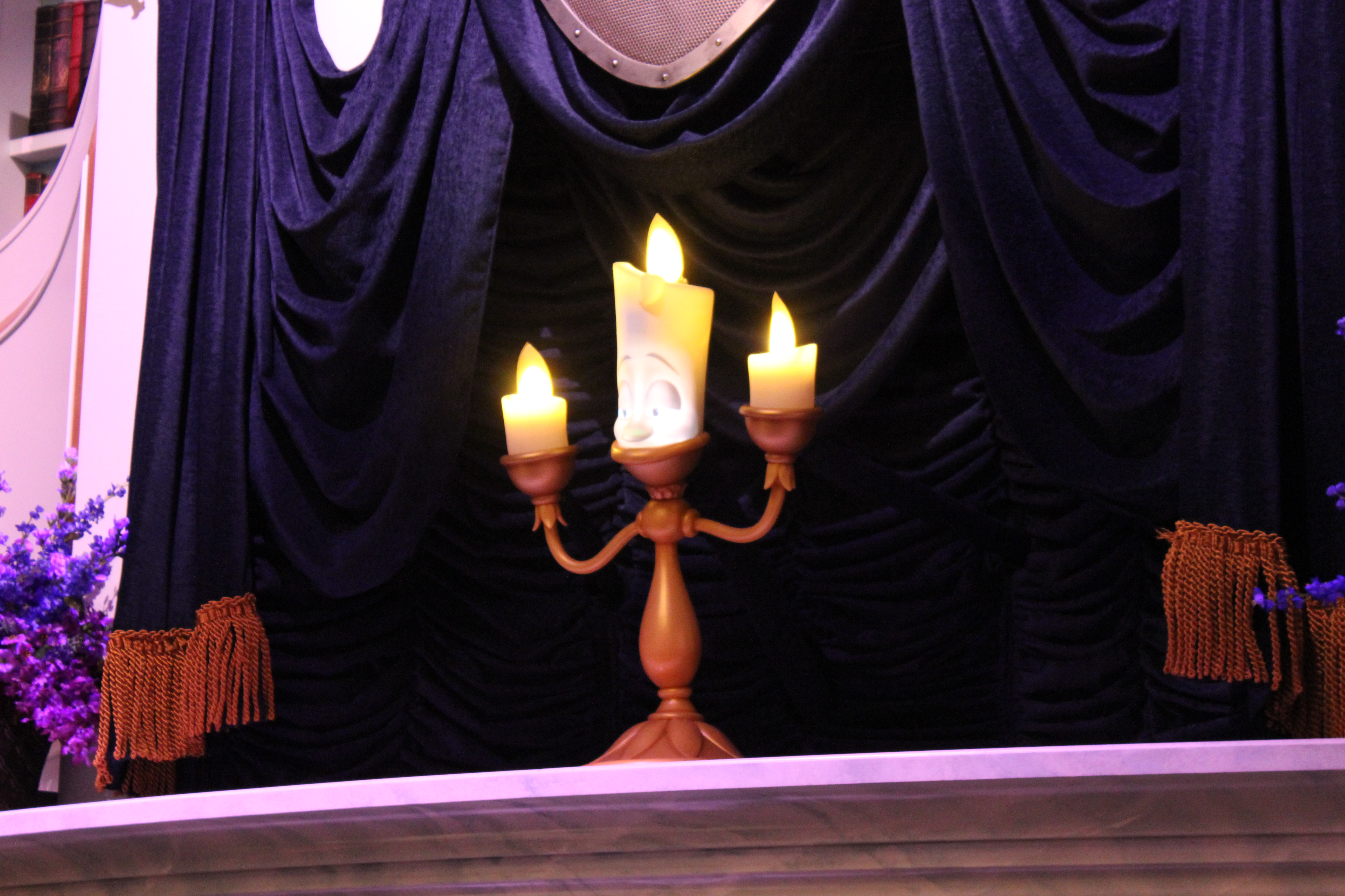 Soon enough, the room gets dark and the mirror begins to sparkle. With magic and some really good carpentry skills, the mirror turns into a full-size doorway, through which guests enter into a wardrobe room. Once in the wardrobe room, the attraction’s premise is explained: You’re supposed to reenact the story of Beauty and the Beast for Belle on her birthday, and guests are chosen to act out key parts in the play.