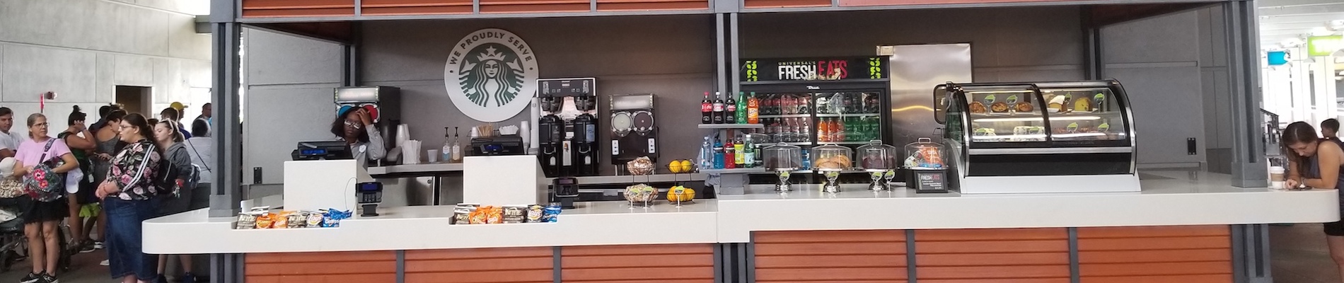Located in in the hub of the CityWalk parking garage, this location is a good opportunity to grab a quick bite to eat before heading back to the car for the drive home. With Starbucks coffee and a limited selection of Voodoo Doughnuts available (including the fan favorite Voodoo Doll doughnut,) it also is one of the better options to hit before "rope drop."
